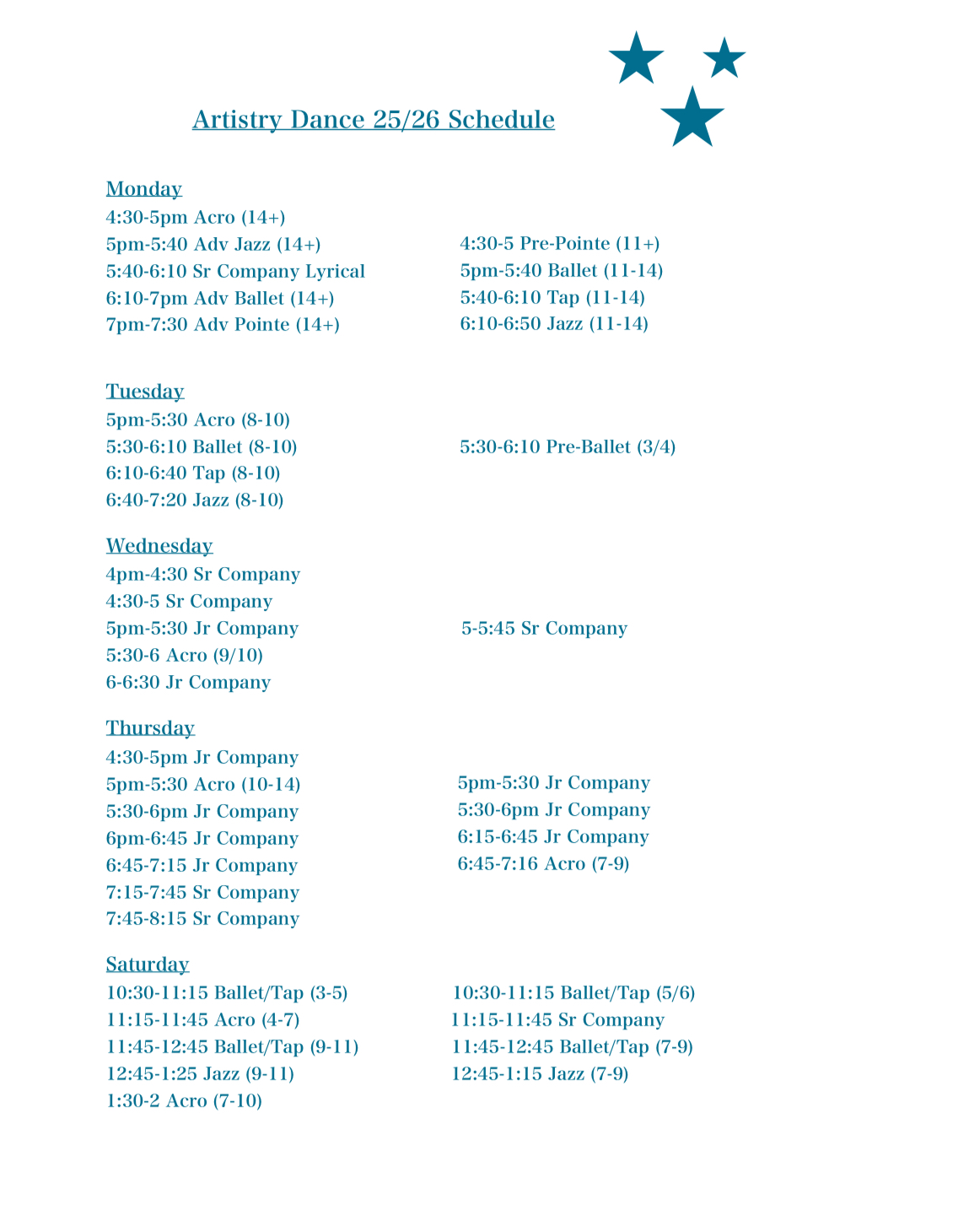 *enrollment in ballet is required for enrollment in both jazz and acro